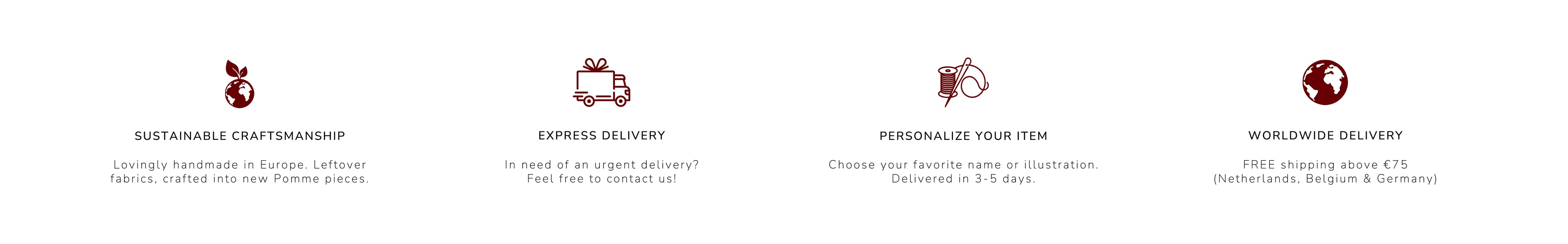 Make it yours met een personal touch. Personaliseer je favoriete item met een unieke POMME illustratie of naam, speciaal gemaakt, voor jou little one(s)!